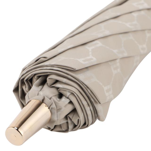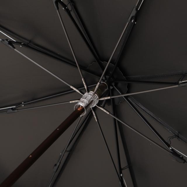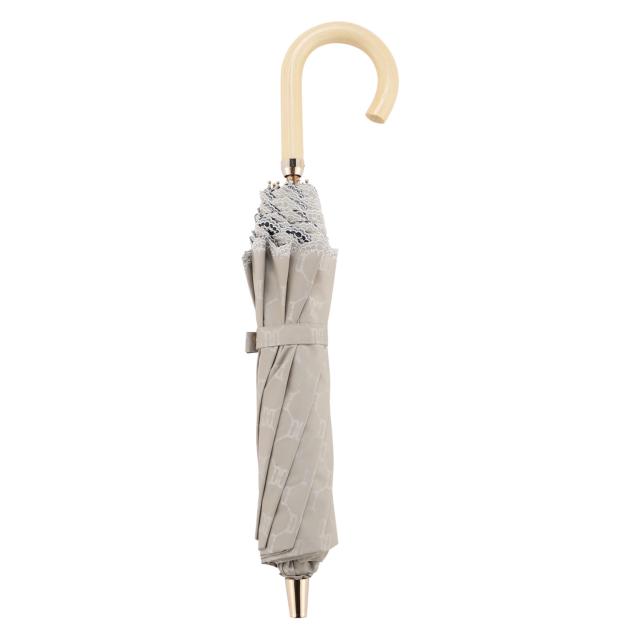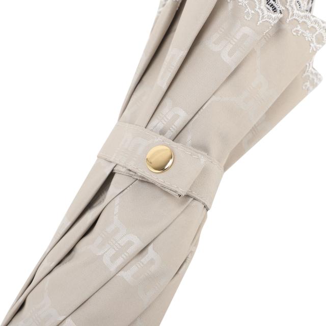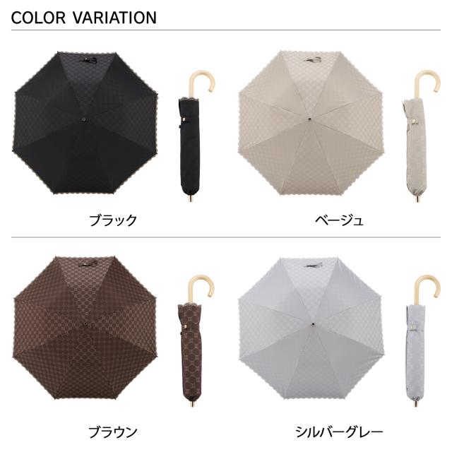 日差しカットする遮光率99.99%、UVカット率99.9%の一級遮光の晴雨兼用折りたたみ傘です。エレガントなジャガード生地に刺しゅうのトリミングをあしらったクラシカルフェミニンなパラソル。ウッド系のハンドルやメタリックな金具使いなどリッチなディテール技が光るデザインです。日傘としての機能も優れているうえ、雨にも対応するオールウェザー仕様です。ダックスのDDロゴをジャガード織で表現したシンプルかつ上品なデザインです。