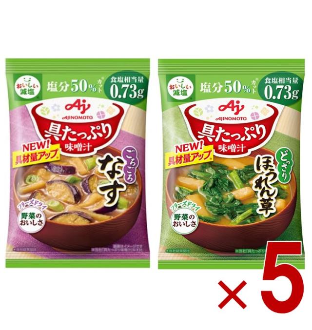 味の素 具たっぷり味噌汁 フリーズドライ 即席味噌汁 インスタント味噌汁 栄養 簡単調理 味噌汁 みそ汁 おみそ汁 味噌汁の具 減塩 2種 各5個 10食セット
