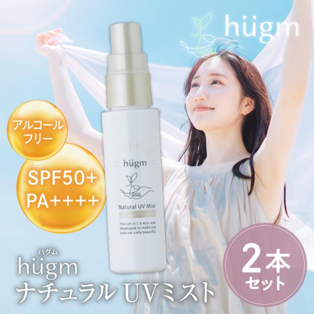 《保湿成分配合 日焼け止め》hugm ナチュラルUVミスト 2本セット ( SPF50+ PA++++ ハグム 全身OK 石けんで落とせる アルコールフリー 髪 頭皮 顔 体 手 腕 9の無添加 UVカット 紫外線対策 茶の実油 ヒアルロン酸 アルガンオイル ミスト スプレー ティーライフ )