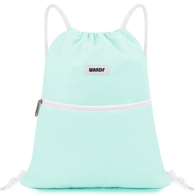 [WANDF] ジムサック ナップサック 巾着 シューズ収納 防水 軽量 水泳 部活 運動 旅行 (A-Mint Green)