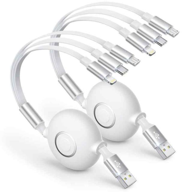 3in1 充電ケーブル Aioneus 2本セット マルチ 充電ケーブル USB Type Cケーブル マイクロUSBコード iPhone 14 13 Pro Max 12 XR Galaxy S22+ S21 S20 A53 Xperia Pixel (巻き取り式-2本, ホワイト)