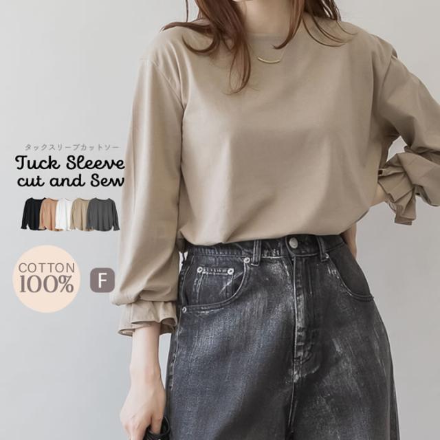 カットソー レディース ゆうメール便送料無料 トップス タックスリーブ 長袖 大人 カジュアル かわいい 5営業日以内入荷 レディース atONE アットワン タックスリーブカットソー