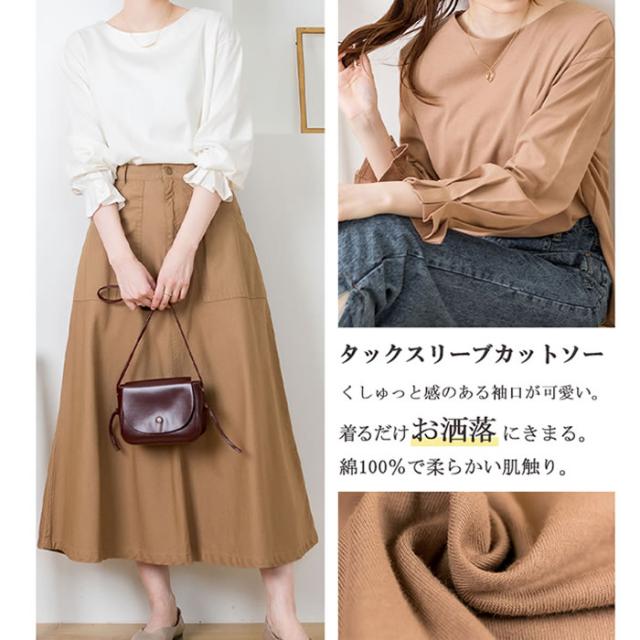 | 商品説明 | 可愛さと機能性を兼ね備えたタックスリーブカットソー。袖にゴムが入っているので、気温に合わせてお好みの位置で止まる。腕まくりしやすく、家事もしやすい♪ラウンドヘムで気になる部分を上手にカバー。前後差があるので、前だけインもしやすい!インでもアウトでおしゃれに仕立て上げてくれます。使いやすいベーシックなカラーはデイリーのコーデに使え、1着は持っておきたいアイテムです。どんなボトムスとも相性良く着まわし力も抜群です。 |