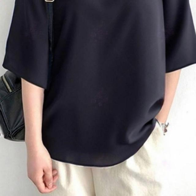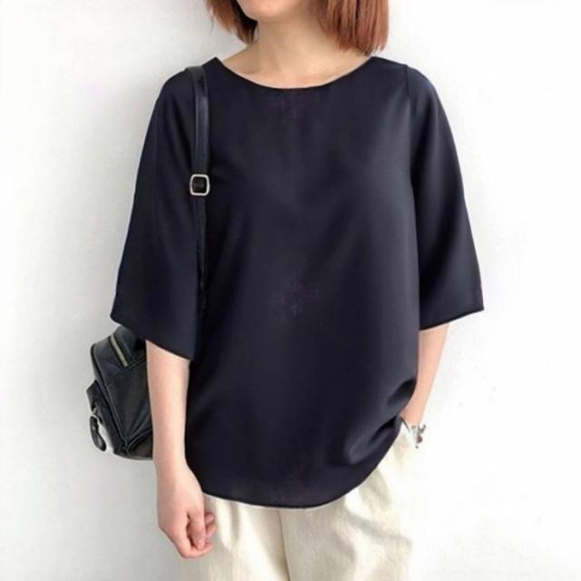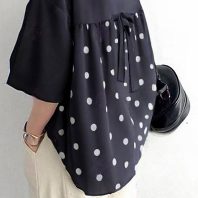 シャツブラウス ドット柄 レディース トップス 五分袖 リボン付き チュニック ラウンドネック 夏服 オシャレ 体型カバー