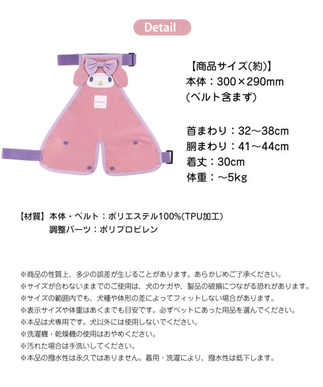 泥よけ エプロン 犬用 レインコート ドッグウェア かわいい 泥よけ 犬の服 ドッグウェア 男の子 女の子 犬のカッパ 雨カッパ いぬ 雨合羽 撥水 梅雨 散歩 ペット用品 レインコート S マイメロディ ピンク PEP1