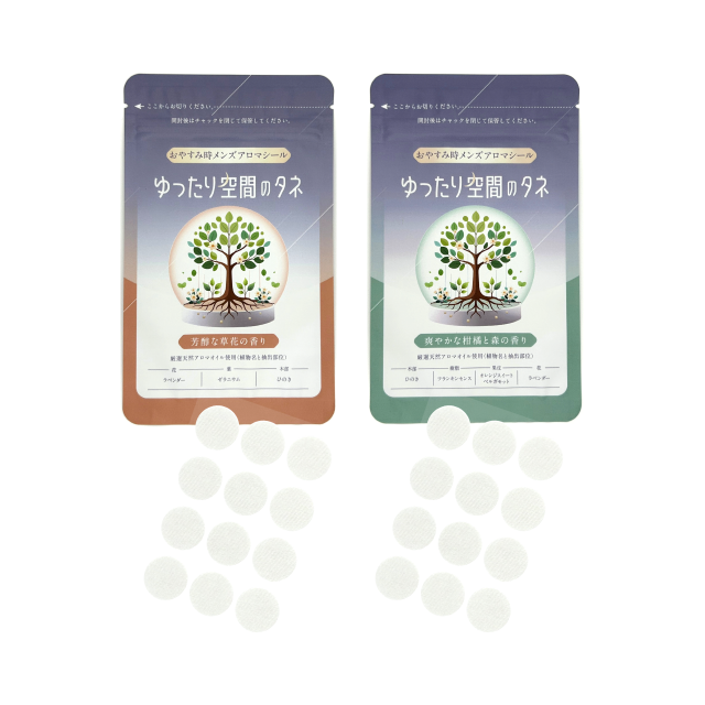 ゆったり空間のタネ 2袋(芳醇な草花の香り1袋+爽やかな柑橘と森の香り1袋) 男性向けアロマブレンド【おやすみ前に貼るだけ、らくらくアロマシール】夜用 枕元用 アロマ