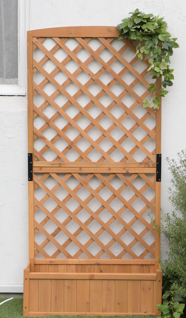 ◆商品名:リビングアウト(Living Out) プランターラティス 木製 ナチュラル 幅71.5×奥行30×高さ148cm プランター付きラティスフェンス 天然木使