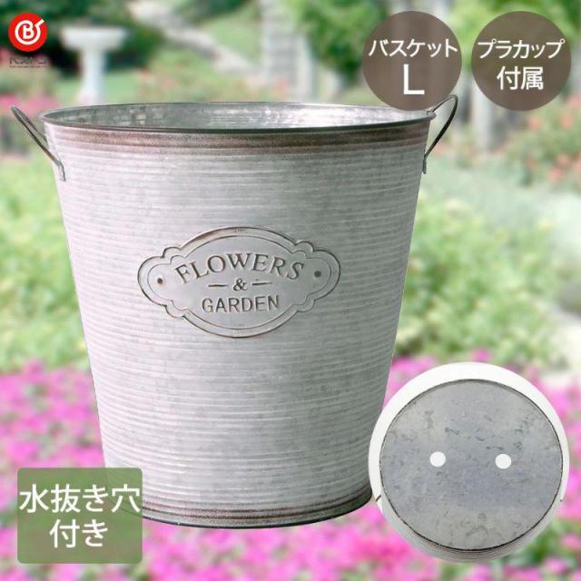 アンティーク ガーデン バスケット L ブリキ 鉢 カバー 小物 おしゃれ かわいい アメリカン 雑貨 インテリア 花 フラワー 植物 植木鉢 室内 屋外 ベランダ カップ付 水抜き穴