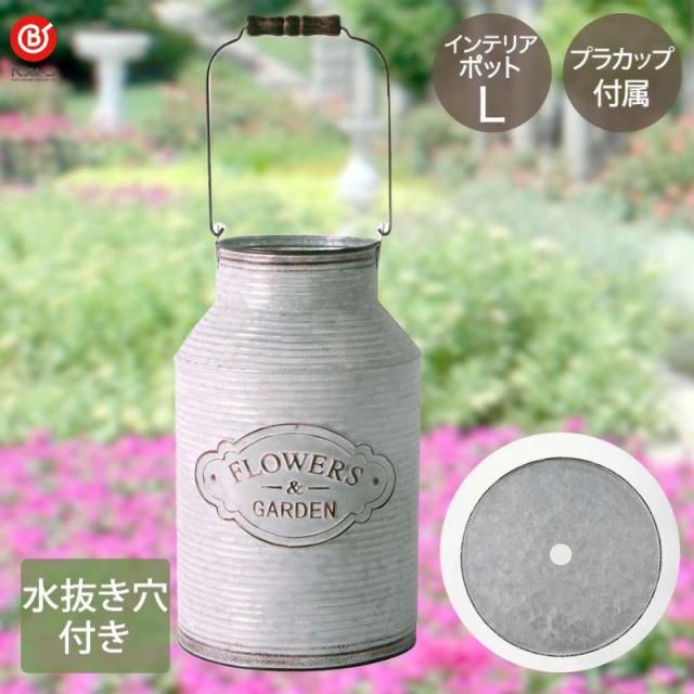アンティーク ガーデン ポット L ハンドル ブリキ 鉢 カバー 小物 おしゃれ かわいい アメリカン 雑貨 インテリア 花 フラワー 植物 植木鉢 室内 屋外 ベランダ カップ付 水抜き穴