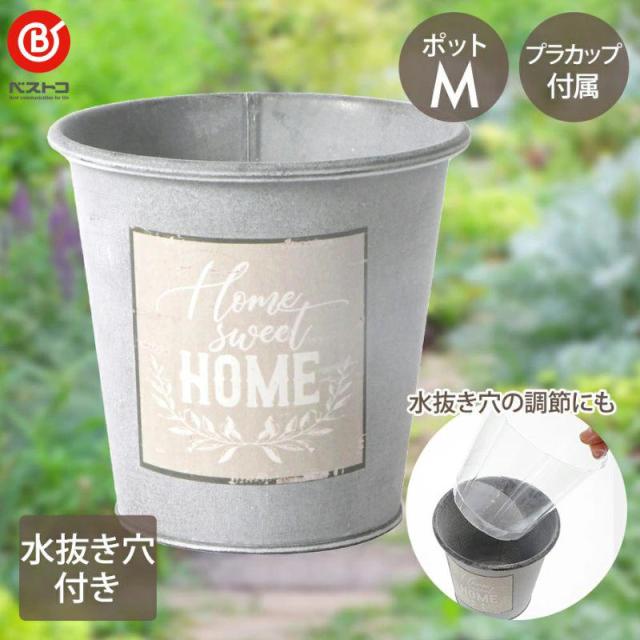 ホーム アンティーク ガーデン ポット M ブリキ 鉢 カバー 小物 おしゃれ かわいい アメリカン 雑貨 インテリア 花 フラワー 植物 植木鉢 室内 屋外 ベランダ カップ付 水抜き穴
