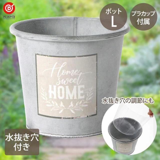 ホーム アンティーク ガーデン ポット L ブリキ 鉢 カバー 小物 おしゃれ かわいい アメリカン 雑貨 インテリア 花 フラワー 植物 植木鉢 室内 屋外 ベランダ カップ付 水抜き穴