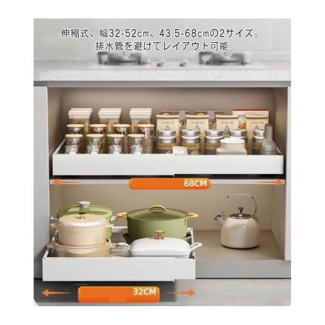 シンク下 収納 スライド ラック 引き出し シンク下スライド 伸縮棚 キッチン 収納 ラック S L シンク下 収納 コンロ下 コンロ下収納 炭素鋼