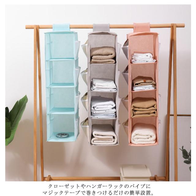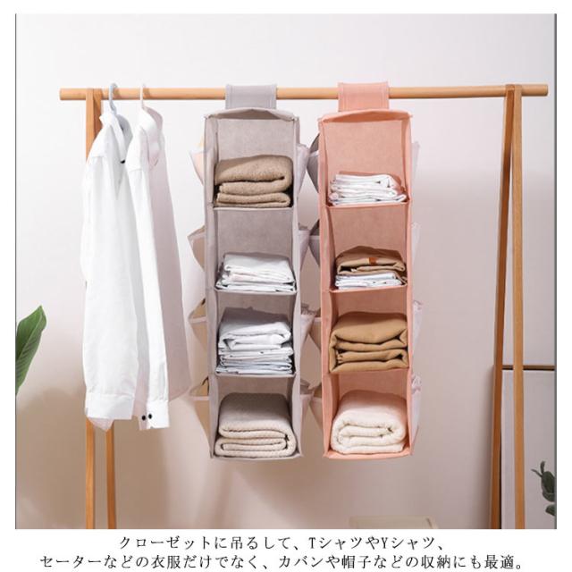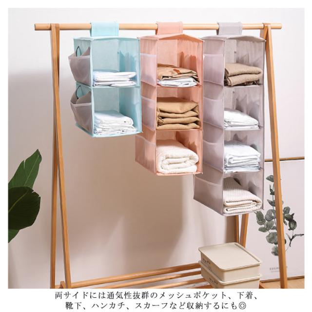 吊り下げ収納 帽子 ハンガーラック バッグ収納 下着収納 クローゼット ラック 2段/3段/4段 毛布収納 靴下 衣類ラック 小物収納 壁掛け 整理整頓 立体 防塵 省スペース ハンガー ラック バッグ収納 収納ボックス コンパクト 折り畳み