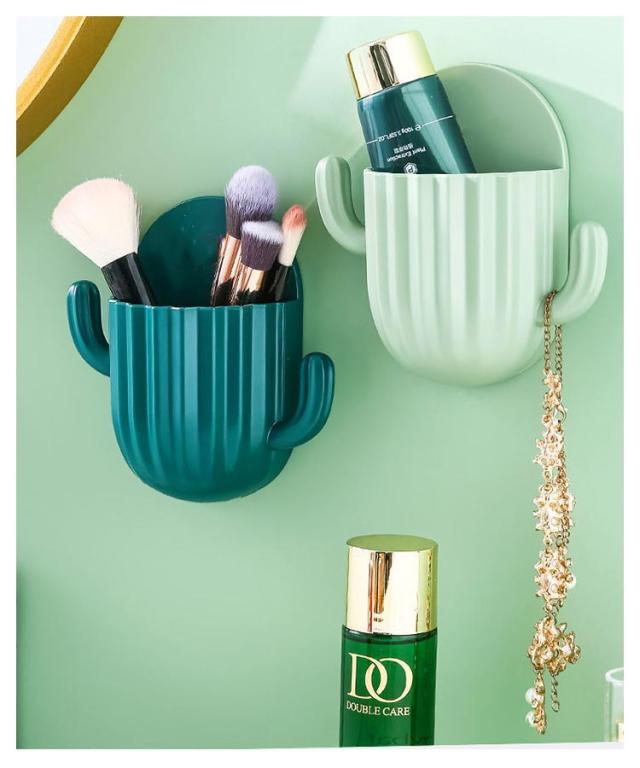 壁付け 小物収納ケース 穴あけ 不要 便利グッズ 小物入れ 粘着式 リモコン テレビ エアコン スマホ ベッドサイド ベッド 洗面所 携帯充電 可愛い サボテン