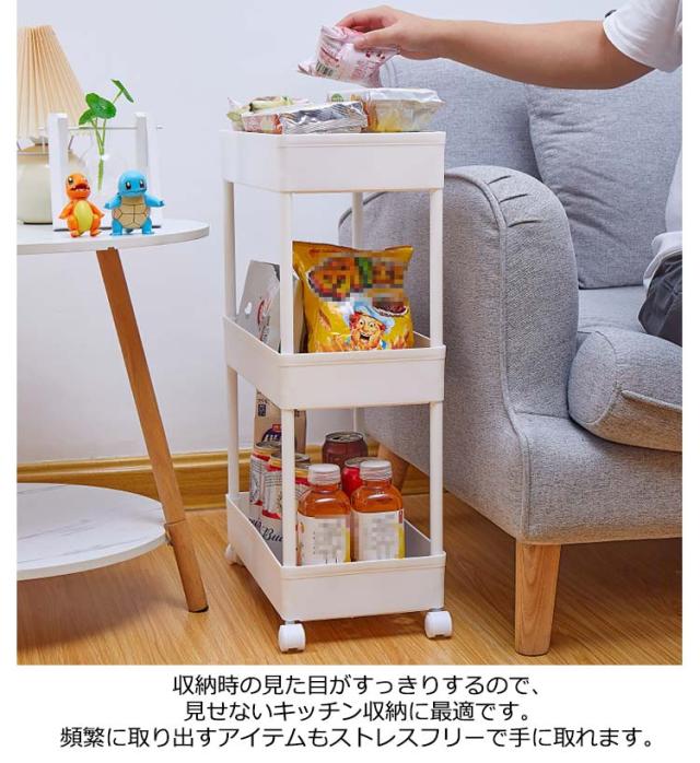 | 2段 3段 幅わずか15cm/22cm! 収納時の見た目がすっきりする! ちょっとした隙間が統一感ある収納スペースに早変わり! 収納はできるだけ目立たないよう、バレないようにしたいもの。 スリムなのに驚きの収納力も魅力! 収納時の見た目がすっきりするので、見せないキッチン収納に最適です。 頻繁に取り出すアイテムもストレスフリーで手に取れます。 落下の心配なしに、安心してサッと必要なものを取り出せるので、ストレスフリーで調理に没頭できます。 ホワイトのシンプルな主張しすぎないデザインで、他の家具と並べた時に悪目立ちしません。 キッチン・リビング・クローゼット収納・納戸の収納棚・玄関収納・子供部屋など、色々なシーンで使える便利なスリムトローリーです。 | |
