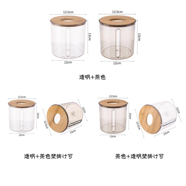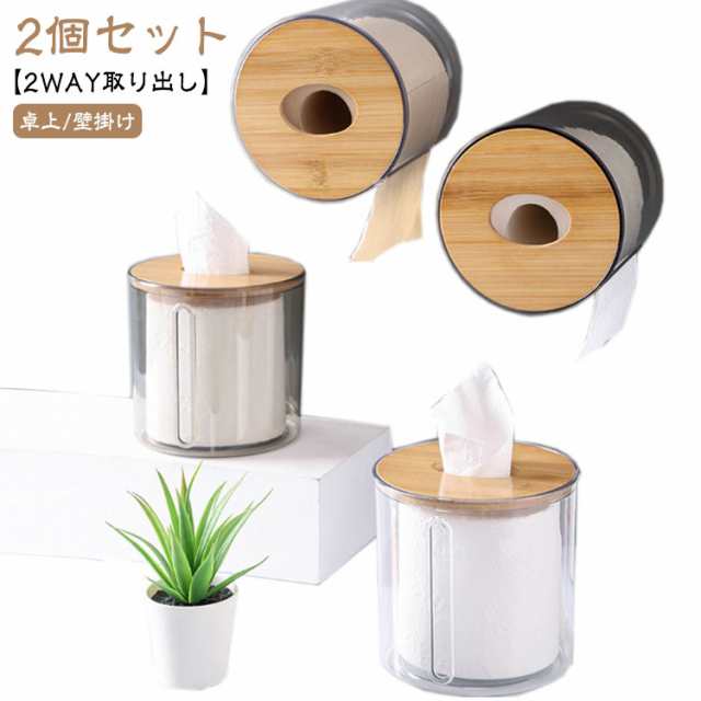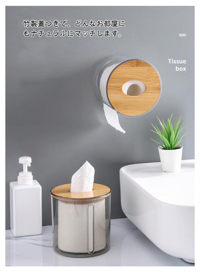 【2個セット】トイレットペーパーホルダー 竹製蓋 卓上/壁掛け トイレットペーパーケース ティッシュケース 円形 クリア 透明 ロールペーパーホルダー おしゃれ ペーパーホルダー ボックス カバー 収納 トイレ用品 ナチュラル インテリア
