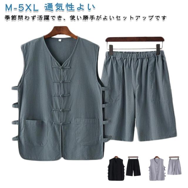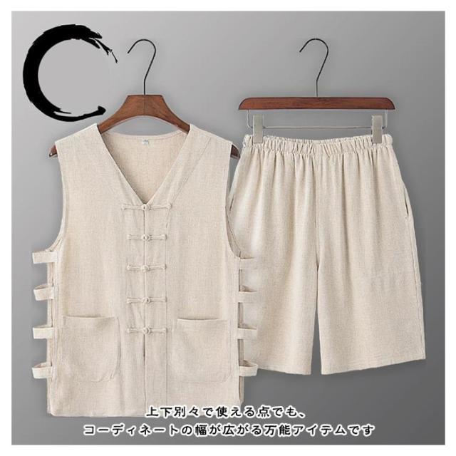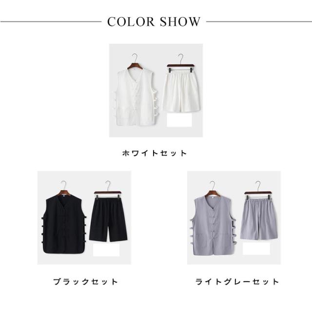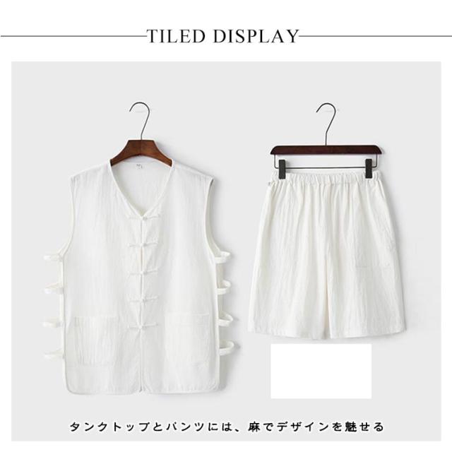 セットアップ メンズ ハーフパンツ リネンTシャツ ベスト 春夏 夏 シンプル 袖なしtシャツ タンクトップ ショートパンツ イージーショーツ 夏服 綿麻 オーバーサイズ インナー 薄手 セットアップ 通気性よい ゆったり 大きいサイズ