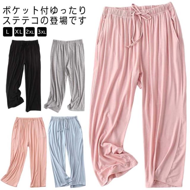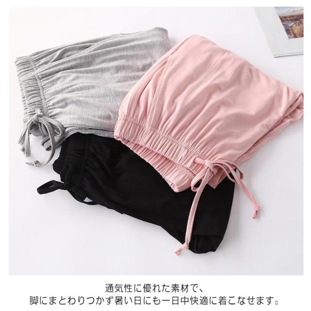 春夏 イージーパンツ 無地 おしゃれ 部屋着 ひざ下 7分丈 レディース ハーフパンツ ゆったり リラックス ワイドパンツ 接触冷感 さらさら ルームパンツ パジャマ 涼しい 吸水性 ボトムス ポケット付 ルームパンツ 可愛い 大きいサイズ 通気性 ステテコ