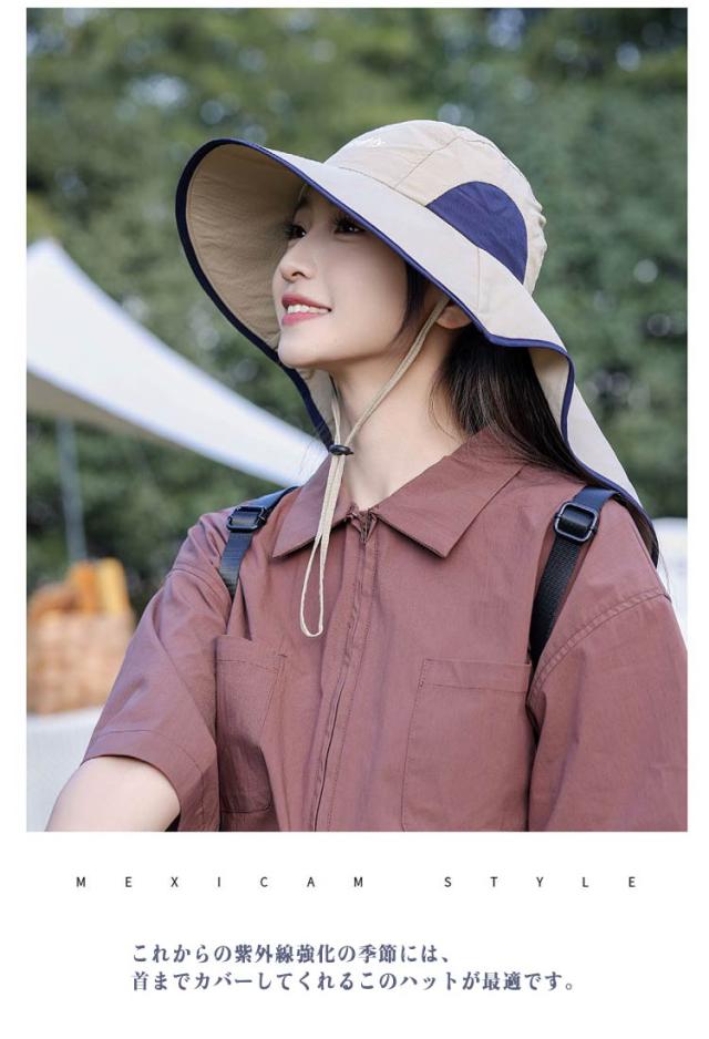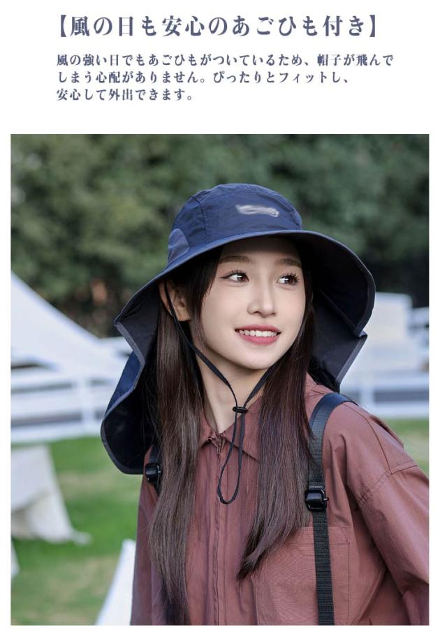 | 今季トレンドのつば広バケットハット 【首まで日差しを防ぐ】 ハットのつばが広めで首までしっかりと日差しを防げます。 これからの紫外線強化の季節には、首までカバーしてくれるこのハットが最適です。 ? 【風の日も安心のあごひも付き】 風の強い日でもあごひもがついているため、帽子が飛んでしまう心配がありません。ぴったりとフィットし、安心して外出できます。 ? 【日傘より便利なハット】 日傘だと手がふさがってしまいますが、この帽子なら両手が自由になり、荷物を持つことも、スマホを操作することも楽々です。 また、日差しを防ぎつつ、スタイリッシュさをキープできます。 ? 【お洒落度UPのトレンドアイテム】 トレンドのつば広ハットは、いつものコーディネートに取り入れるだけで、一気にお洒落度がUPします。 シンプルなTシャツにも、ドレッシーコーデにも合わせやすいデザインです。 ? 【遮光目的に最良のつば幅】 顔はもちろんのこと、首の後ろや耳までしっかりとカバーするこの帽子は、遮光目的の帽子として最良のつば幅を採用しています。これ一つあれば、日焼け対策も完璧です。 | |