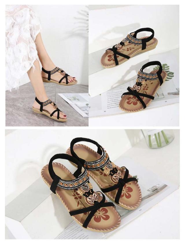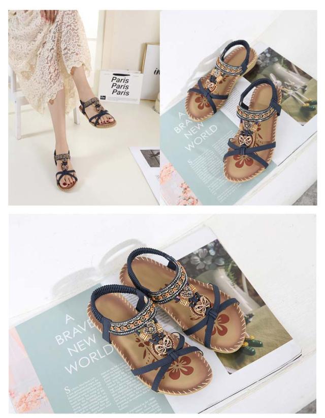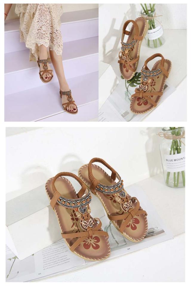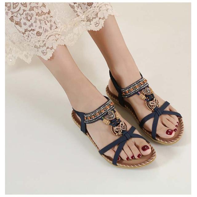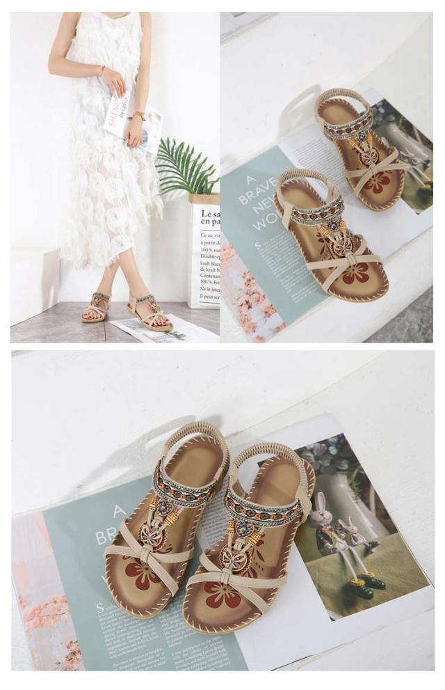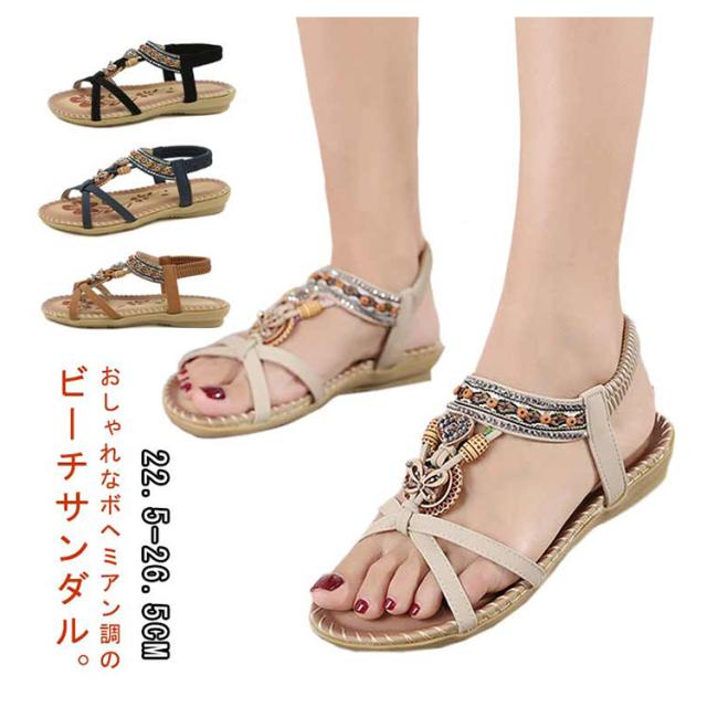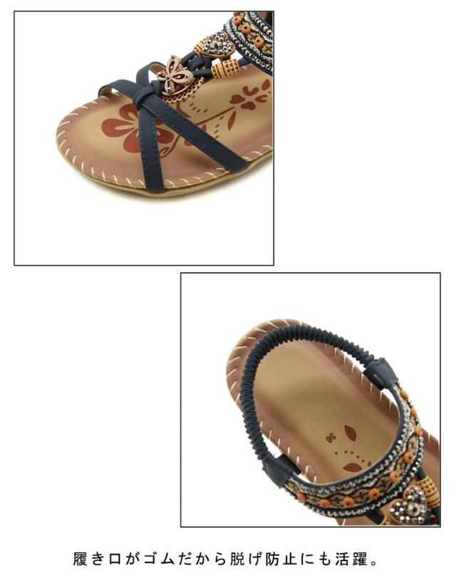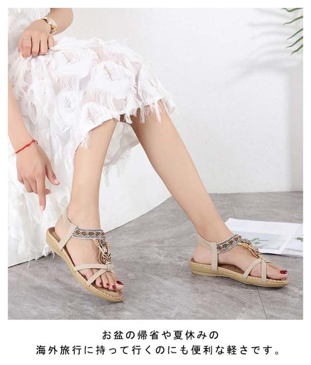 ボヘミアン お出かけ サンダル サンダル ビーチサンダル カジュアルサンダル 編み込み レディース ぺたんこ ビジュー サンダル 夏 美脚 エスニック 歩きやすい ジュニア フラット 疲れない 滑り止め 水遊び