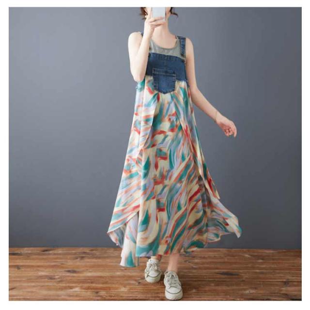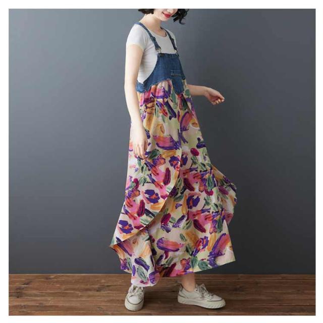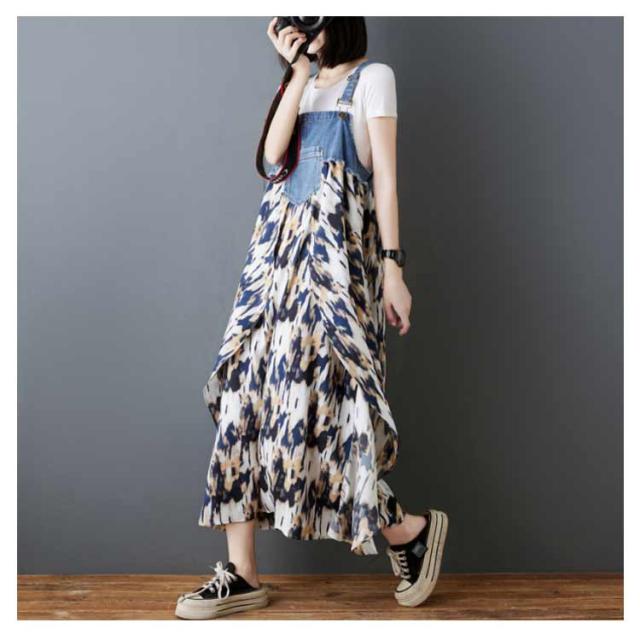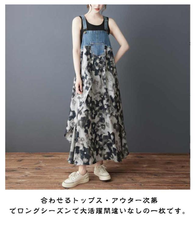 ロング デニムサロペット 体型カバー カジュアル 春 サロペット ワンピース 薄手 ゆったり エレガント 夏 レディース オーバーサイズ ゆったり マタニティ デニムサロペット 大人 きれいめ 上品