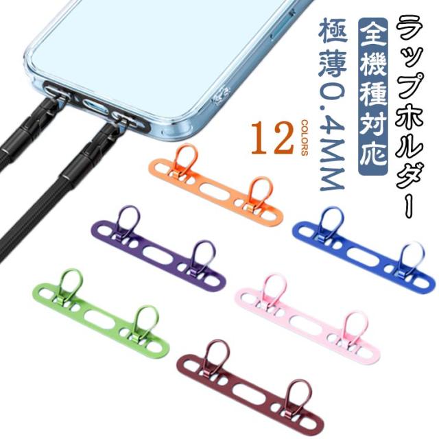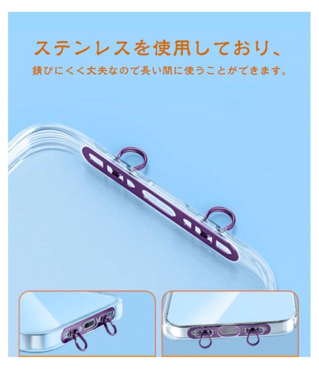薄型 スマホストラップホルダー 極薄0.4mm ダブルリング ステンレス製 携帯ストラップホルダー ダブルリング スマホホルダー 挟むだけ 充電の邪魔にならない 落下防止 スマホストラップホルダー