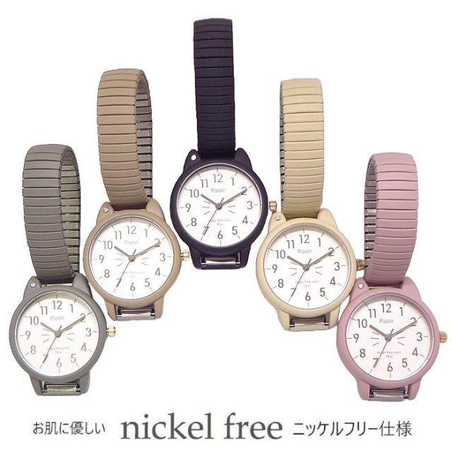 レディース 腕時計 ニッケルフリー NTK-315 ネコ型ケース アラビア数字 ジャバラ エクスパンション ベルト 猫 ネコ ねこ キャット cat レディス ウオッチ 金属アレルギー の出にくい ニッケルフリー アレルギー対応 肌に優しい 見やすい 軽量