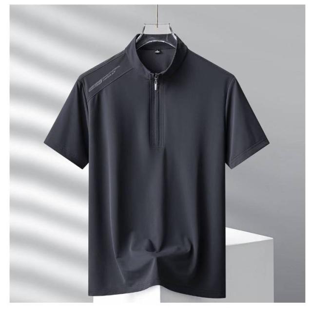 ゴルフシャツ 薄手 メンズ ストレッチ ハーフジップ ポロシャツ 半袖 接触冷感 スポーツウェア ドライ Tシャツ トップス ゴルフウエア ハイネック 涼しい 無地 紫外線対策 日焼け対策 ゴルフウエア 通気性 作業着 春夏 父の日