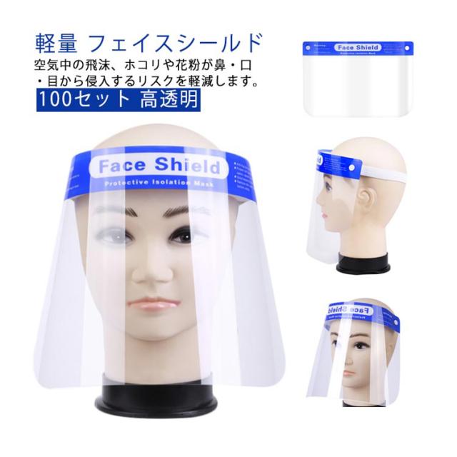 業務用 両面保護フィルム付き 大人用 クリア 防塵 フルフェイス 飛沫防止 簡易式 保護シールド 透明マスク マスク シールド 100枚セット 曇り止め フェイスシールド フェイスシールド フェイスガード フェイスカバー コンビニ 介護施設 医療 水洗い PET製 男女兼用