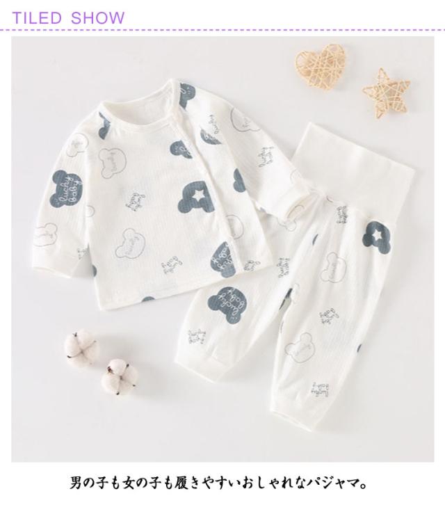 男児 薄手 パジャマ 女の子 上下セット 子ども ベビー エアコン 腹巻付きパジャマ セットアップ ルームウェア 前開き 寝冷え対策 長袖 小学生 こども 男の子 部屋着 冷え対策 キッズ 通気 服 66 73 80 90