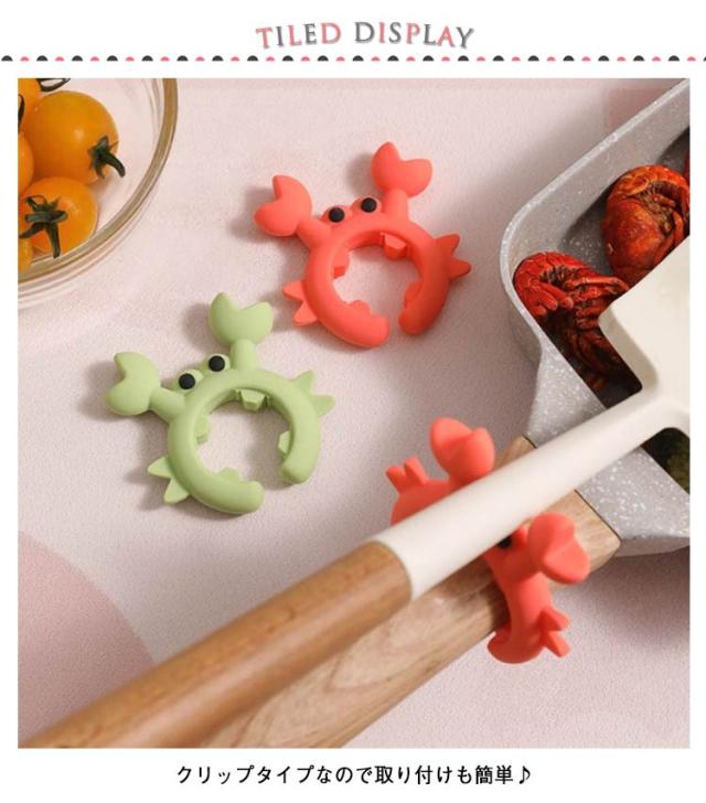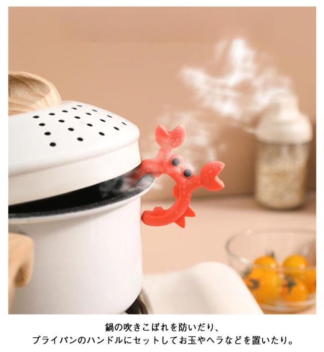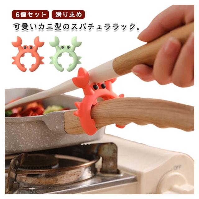 鍋スパチュララック カニ型 スプーンホルダー ヘラホルダー フライ返し 滑り止め スパチュラホルダー お玉ホルダー 吹きこぼれ防止クリップ 6個セット 6個セット 食器置き 鍋ふた置き 省スペース 可愛い 調理器具 フライパン キッチン収納ラック