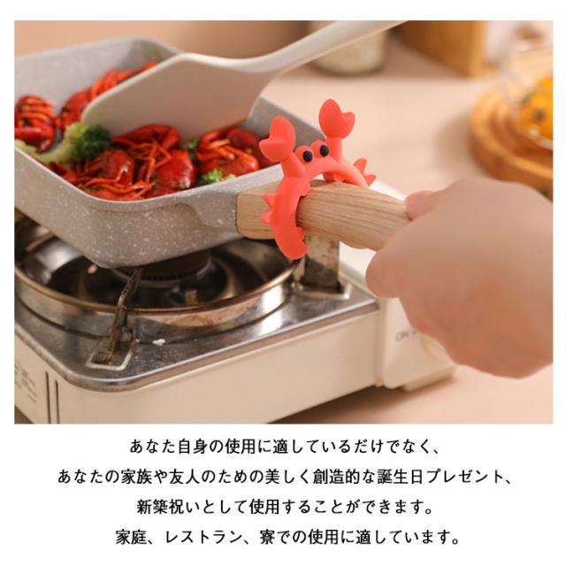 | 6個セット!可愛いカニ型のスパチュララック。 クリップタイプなので取り付けも簡単♪ 鍋の吹きこぼれを防いだり、プライパンのハンドルにセットしてお玉やヘラなどを置いたり。 シリコン素材で耐熱性に優れ、お手入れも簡単! あなた自身の使用に適しているだけでなく、あなたの家族や友人のための美しく創造的な誕生日プレゼント、新築祝いとして使用することができます。 家庭、レストラン、寮での使用に適しています。 | |