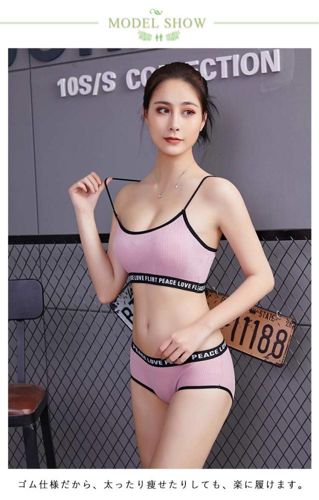 | スポーティーなブラ&ショーツ上下セット! ゴム仕様だから、太ったり痩せたりしても、楽に履けます。 ノンワイヤーなので痛くなく、快適に着用いただけます! | |