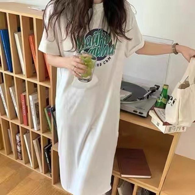 ロンt レディース 半袖 袖長め tシャツワンピース ルームウェア 夏用 ロングワンピース 20代 30代 10代 50代 40代 部屋着