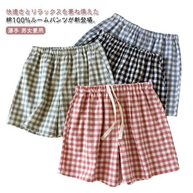 ルームパンツ 短パン 綿100% レディース 夏物 ルームパンツ ズボン コットン チェック柄 ショートパンツ メンズ カジュアル ナイトウェア オールシーズン 部屋着 パジャマ 薄手 男女兼用 プレゼント