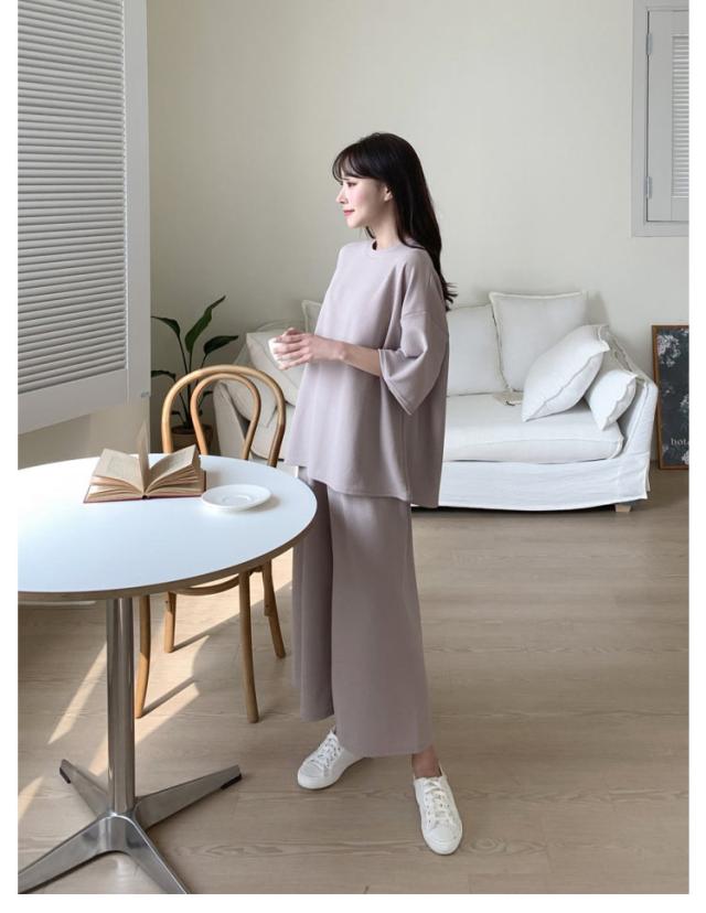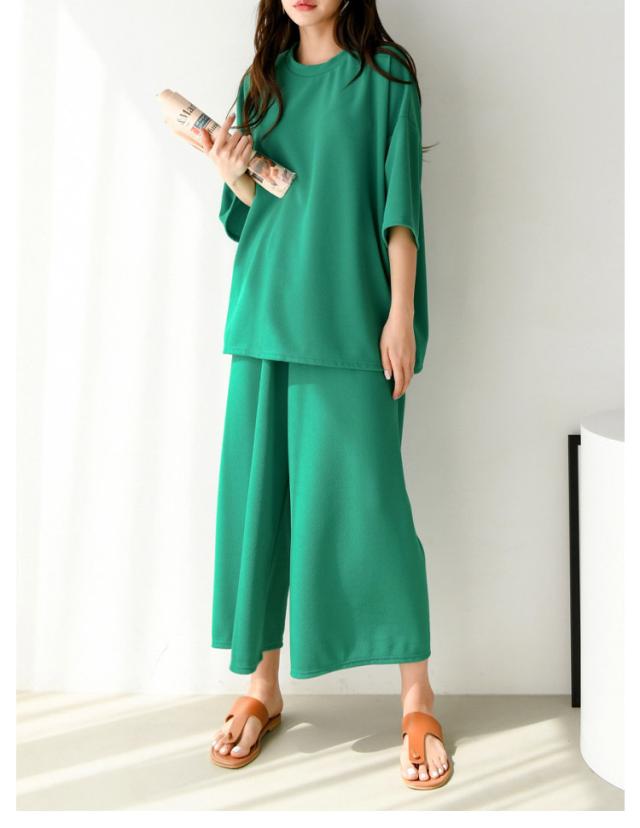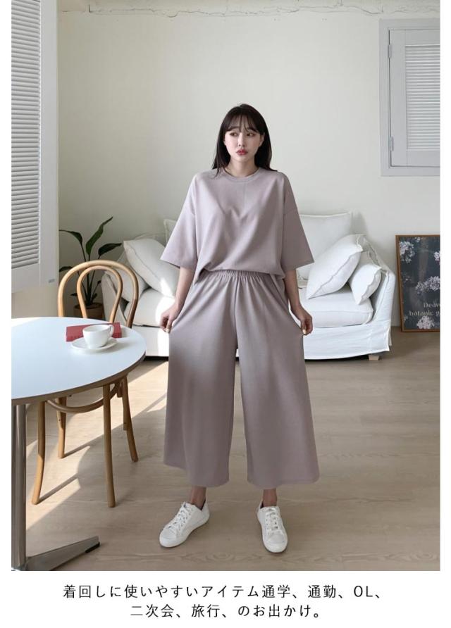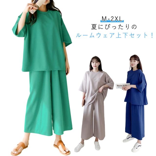トップス レディース ワイドパンツ パジャマ レディース 2点セット おしゃれ 春服 半袖 ルームウェア 体型カバー セットアップ かわいい 涼しい 大きいサイズ ゆったり 夏服 シンプル フォーマル 通勤 通学 旅行 ママスーツ 普段着