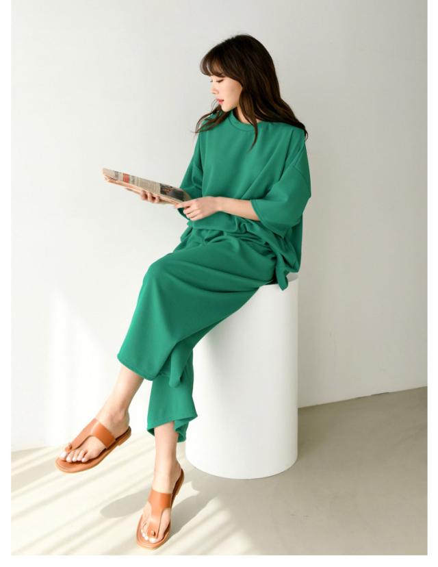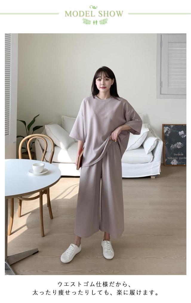 | 夏にぴったりのルームウェア上下セット! ウエストゴム仕様だから、太ったり痩せったりしても、楽に履けます。 シンプルなデザインなので年代問わず着用いただけます! 着回しに使いやすいアイテム通学、通勤、OL、二次会、旅行、のお出かけ。 | |