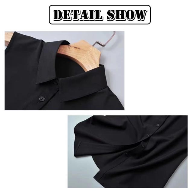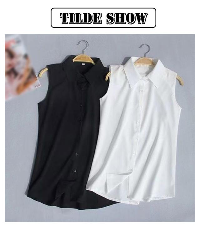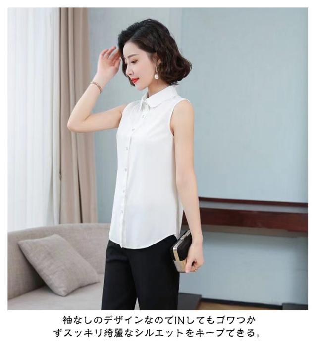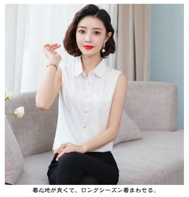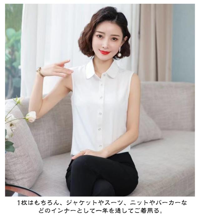 | 【S-3XL】【角襟 丸襟】 簡単にレイヤードが楽しめるノースリーブシャツ。 着心地が良くて、ロングシーズン着まわせる。 1枚はもちろん、ジャケットやスーツ、ニットやパーカーなどのインナーとして一年を通してご着用る。 袖なしのデザインなのでINしてもゴワつかずスッキリ綺麗なシルエットをキープできる。 爽やかできちんと感あるシャツブラウス素材、うれしい | |
