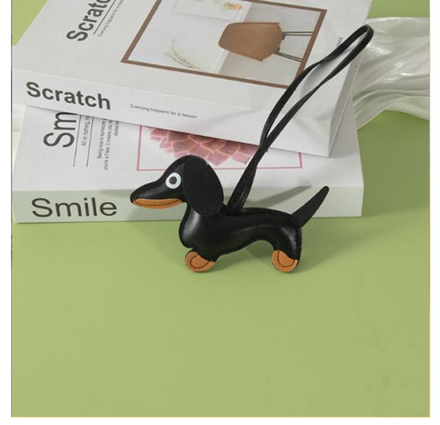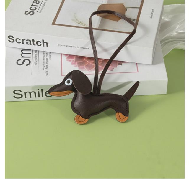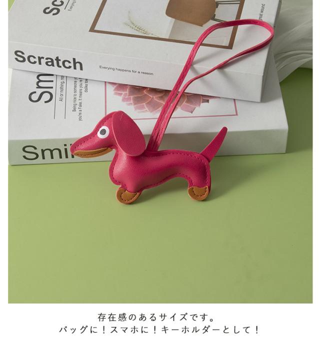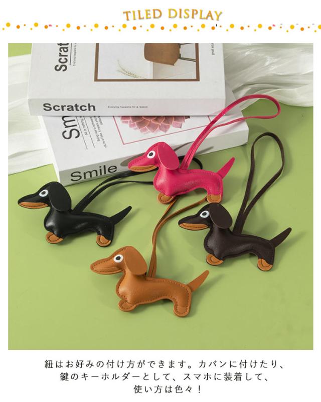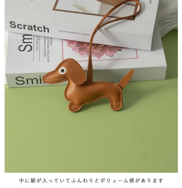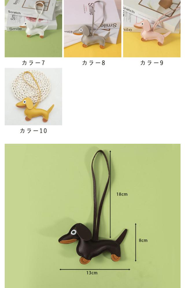 動物 バッグ チャーム チャーム バッグチャーム 合皮 アクセサリー バッグチャーム フェイクレザー ダックスフンド かわいい キーホルダー アニマル ロープストラップチャーム バッグチャーム キーリング