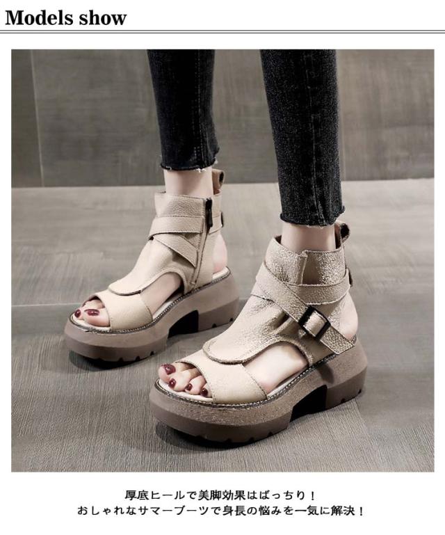 春夏 ブーツサンダル サマーブーツ レディース サンダル サマーブーツ アンクルブーティ オープントゥ 厚底 おしゃれ ショートブーツ ウェッジソール コンフォートサンダル 夏 夏ブーツ サマーブーツ 疲れにくい 痛くない
