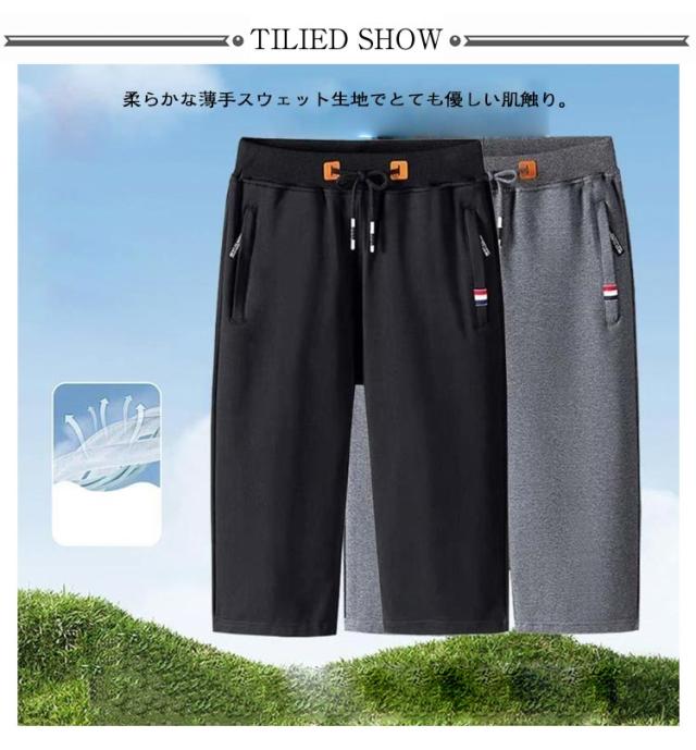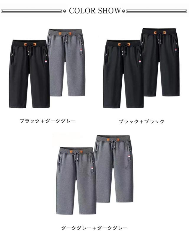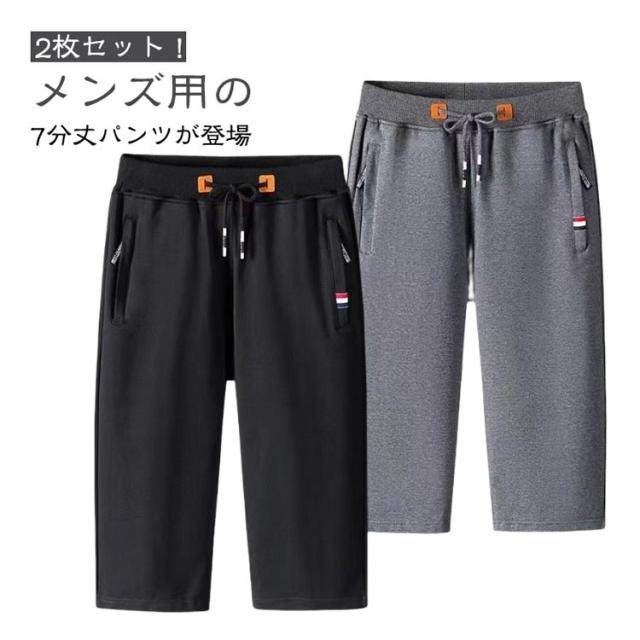 スポーツ 7分丈 メンズ 2枚セット 夏服 スウェットパンツ 部屋着 ハーフパンツ ウエストゴム 七分丈 スウェットパンツ スウェット 夏用 サマーパンツ ショートパンツ ルームパンツ 運動着 男性 短パン カジュアル 無地 シンプル 大きいサイズ ボトムス