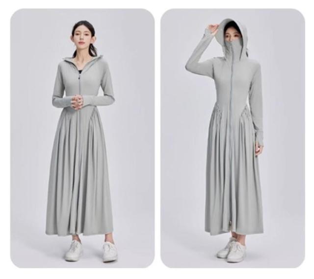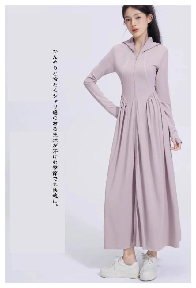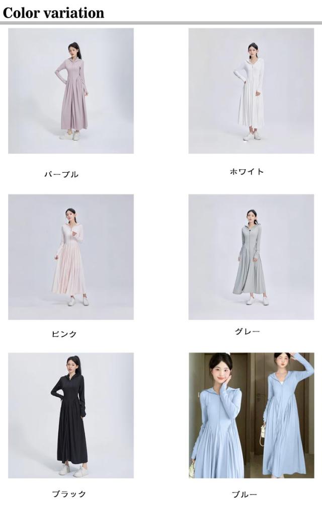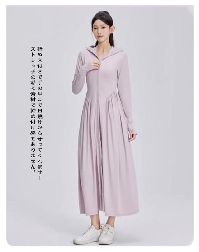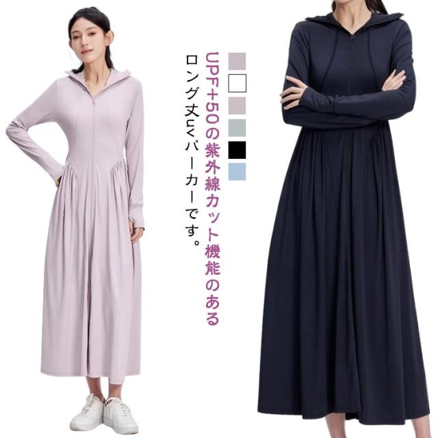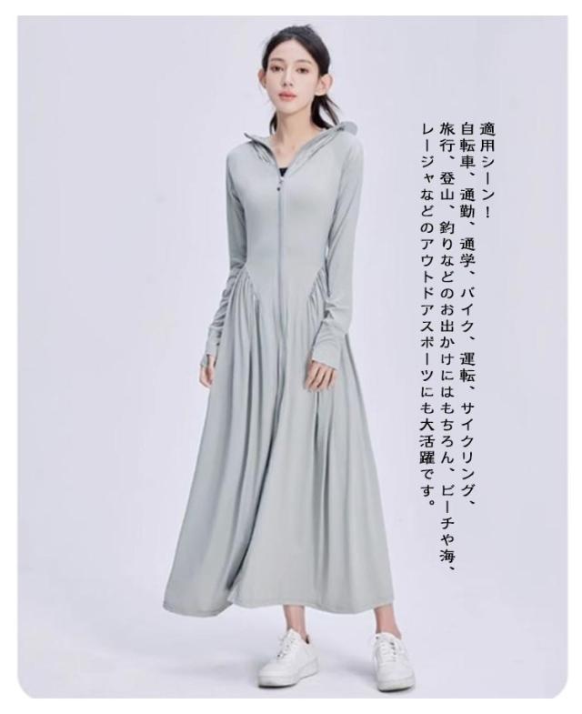 超ロング パーカー UPF50+ UVカット レディース サンバイザー付き つば広 ワンピース 全身カバー 長袖 吸水速乾 トップス 軽量 ラッシュガード 紫外線対策 UVカット 涼しい 接触冷感 パーカー 大きいサイズ 通勤 釣り 自転車 アウトドア 海 プール