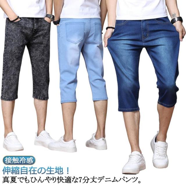 デニムパンツ アンクルパンツ スキニーパンツ デニムパンツ 7分丈 メンズ スキニー デニム ひんやり 接触冷感 クロップドパンツ ストレッチ パンツ 涼しい 大きサイズ 春