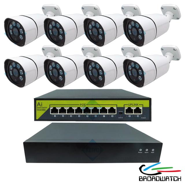 SEC-N-8Kは、800万画素屋外用ワンケーブルバレット型防犯カメラ8台と、リンクポート付8ポートハブ1台、HDD録画機1台のセット商品です。