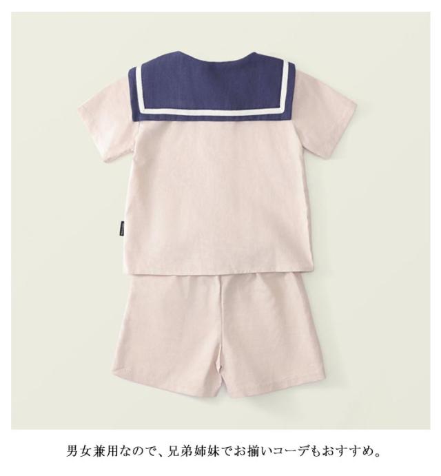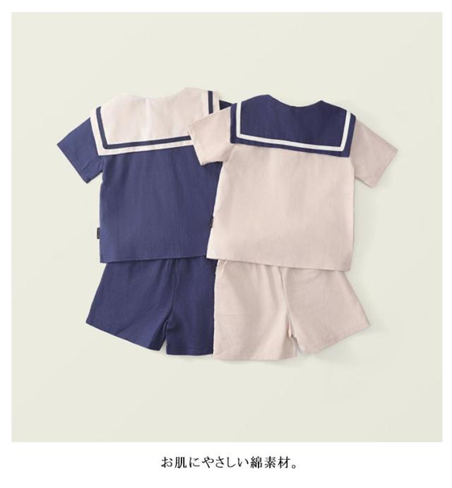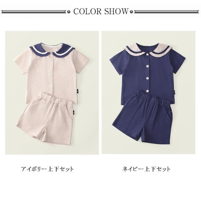 | 大人気のセーラデザインのセットアップ セーラー風な襟がどこか清潔感もあり。 やさしい着心地でお子様のお気に入りの一着に。 お肌にやさしい綿素材。 パンツのウエストはゴムで着脱楽ちん♪ 男女兼用なので、兄弟姉妹でお揃いコーデもおすすめ。 お子様のお洒落さと機能を重視したデザインで、結婚式、入園式、お祝いなどのフォーマルシーンはもちろん、発表会の衣装としても! | |