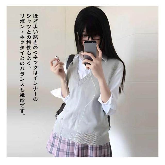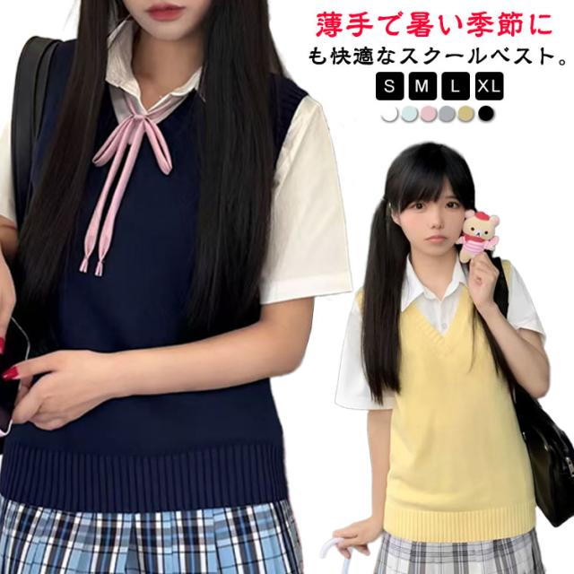 学生服 ベスト 薄手 高校 レディース 女子 通学 学生 学校 中学 夏 ベスト 女子 ニットベスト 女子高生 大きいサイズ Vネック 制服 中校生 ニットセーター 無地 トップス 高校生 スクールベスト カジュアル コスプレ 入学式