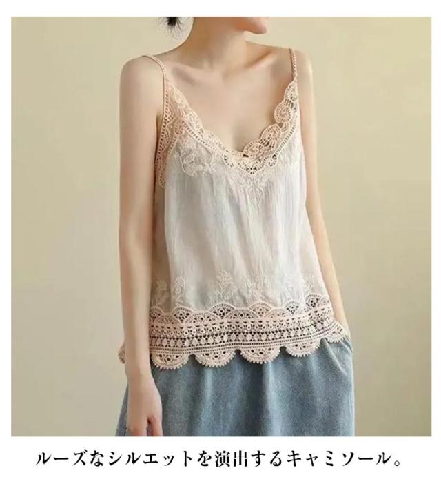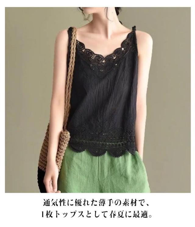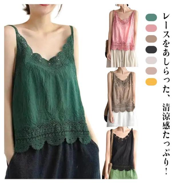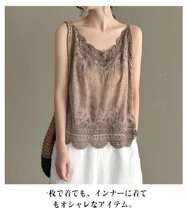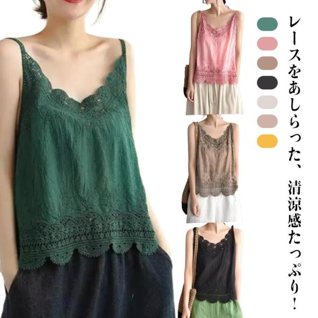 下着 重ね着 レース 夏物 無地 ノースリーブ コットンリネン 裾レース キャミソ レイヤード キャミソール レディース 薄手 Vネック 薄手 かわいい インナーウェア インナー 綿 春 夏 重ね着 ゆったり 20代 30代 40代 フリーサイズ トップス