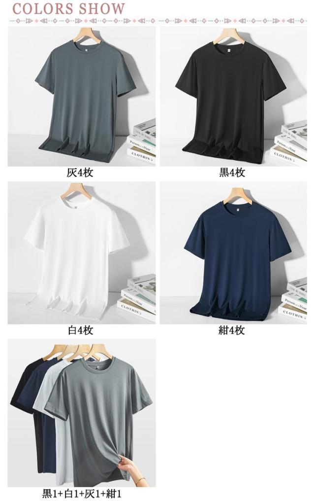 夏 送料無料 冷感 通気性 ファッション 涼しい 4枚セット おしゃれ 冷たい ゆったり メンズ アイスシルクTシャツ 半袖 無地 韓国 メンズ半袖 トップス カジュアル 吸湿速乾 半袖Tシャツ tシャツ 接触冷感 無地 Tシャツ メンズ 半袖