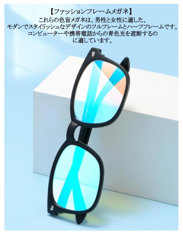 | 色盲メガネ 赤と緑の色覚異常補正メガネ 【色覚異常の補正】色補正、赤/緑の色の異常、色の異常、色の弱さを解決し、世界の美の世界からの脱出をご覧ください。 【屋内および屋外での使用】赤緑メガネは明るい環境ではよりよく機能しますが、屋内および屋外での使用に適しています。 【ファッションフレームメガネ】これらの色盲メガネは、男性と女性に適した、モダンでスタイリッシュなデザインのフルフレームとハーフフレームです。コンピューターや携帯電話からの青色光を遮断するのに適しています。 【品質コーティング】これらのガラスには、色覚を強化することで色覚異常(CVD)の人々を助ける独自の色強化コーティングが施されています。このメガネは、色覚異常の人に完全な色覚を提供することを目的としたものではありません。フルカラービューなどを提供しません。 | |