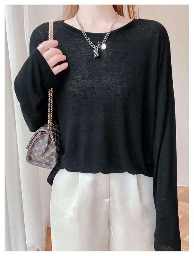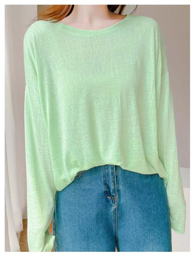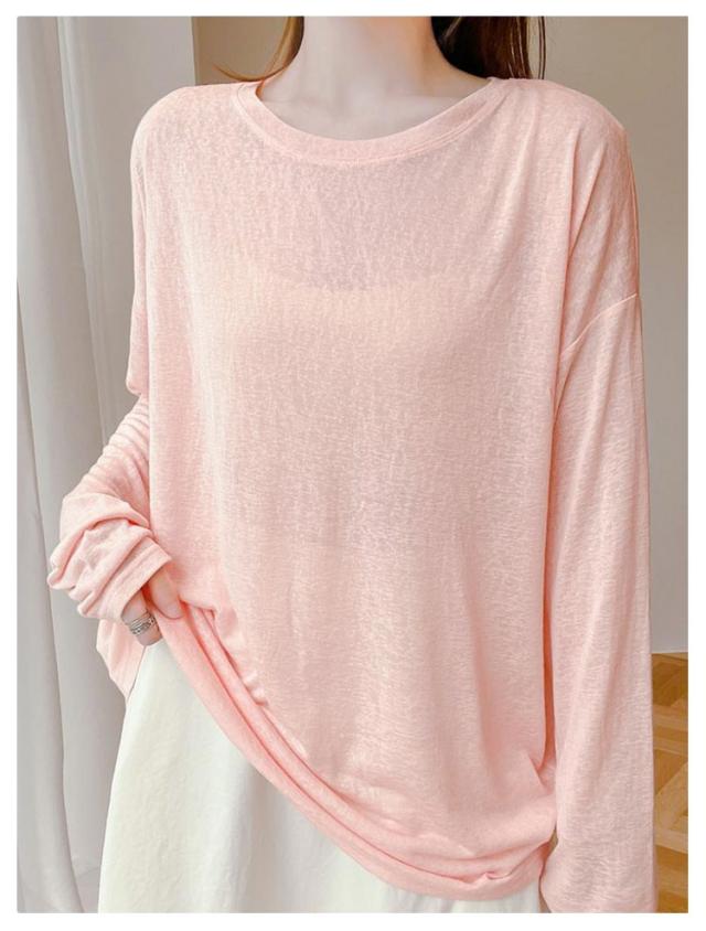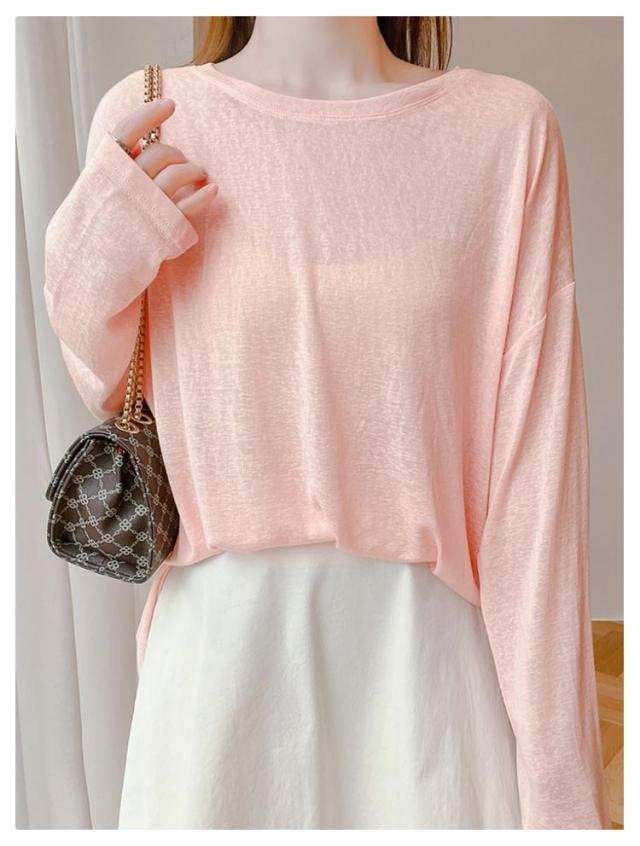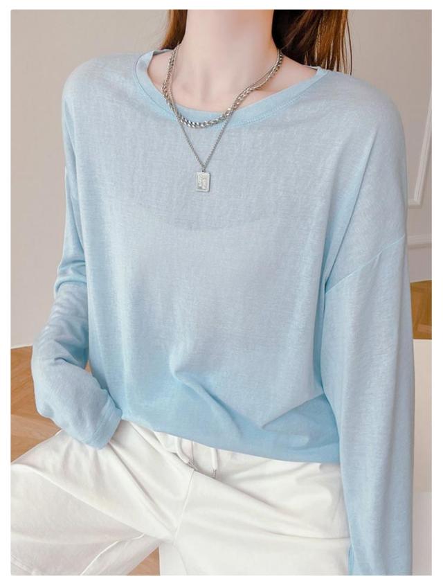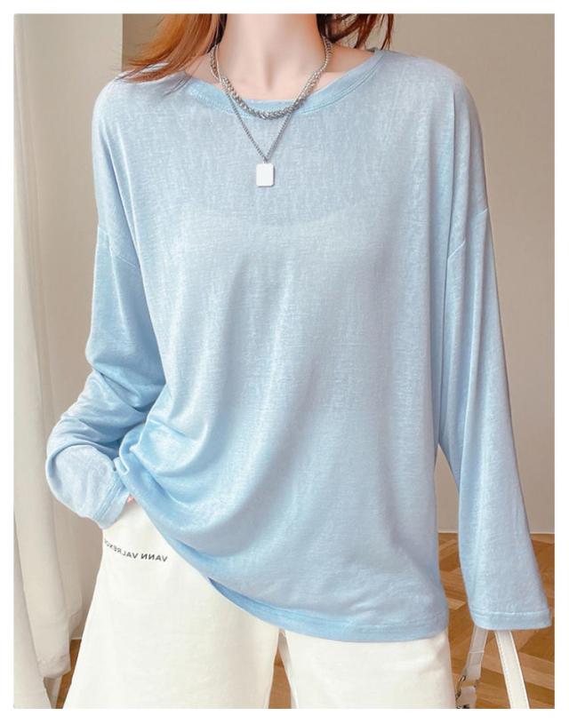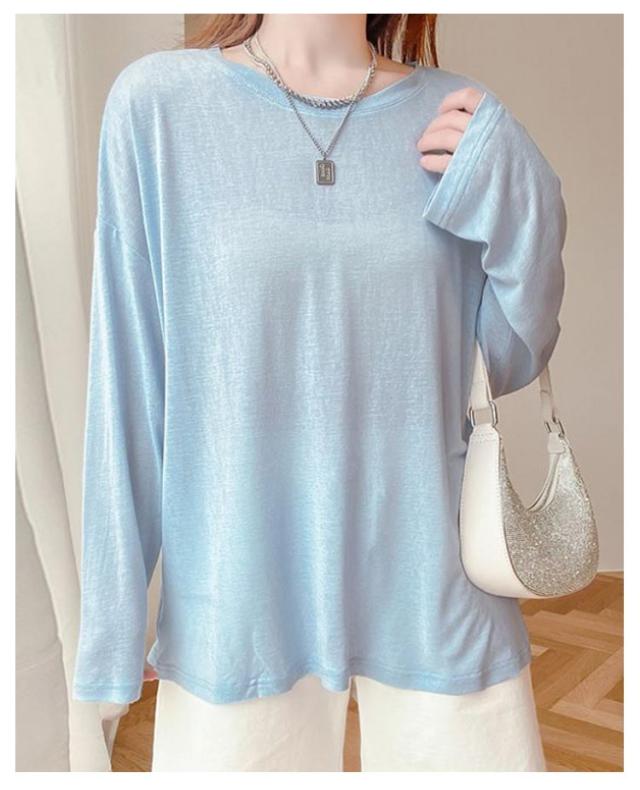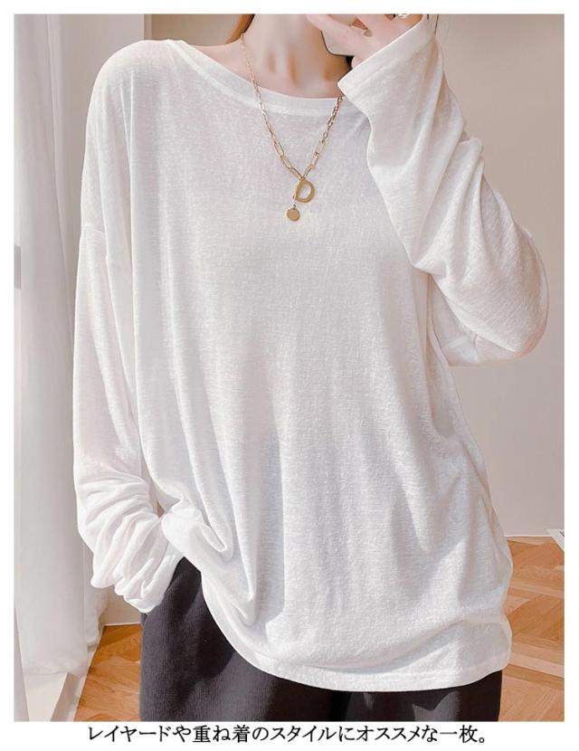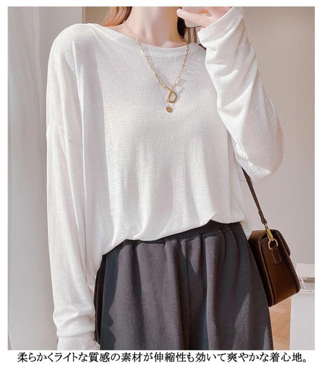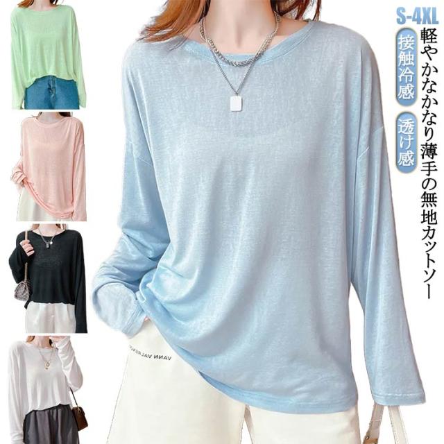 カットソー 長袖tシャツ レディース シアートップス クール冷感 トップス 接触冷感 薄手 夏 春 クルーネック インナー 涼感 日よけ 無地カットソー 紫外線対策 重ね着 涼しい 大きサイズ